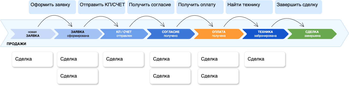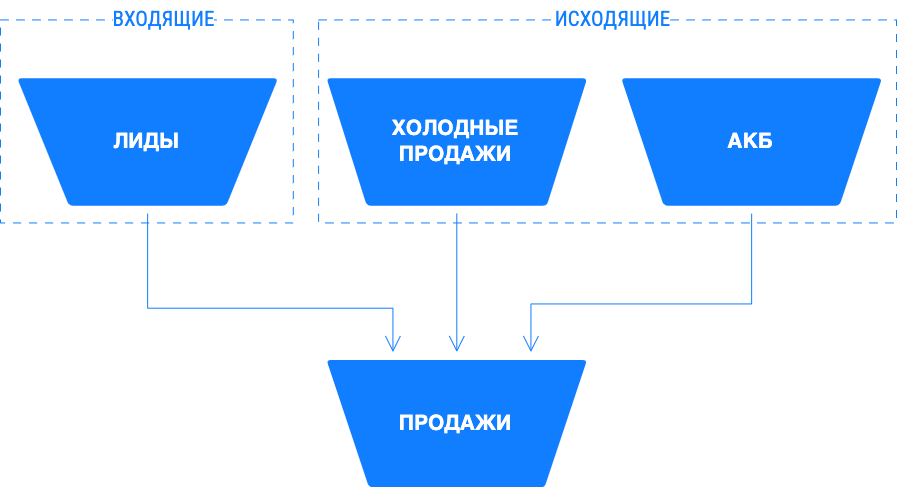 ВСЕ ПРОЕКТЫ ПО-РАЗНОМУ НАЧИНАЛИСЬ, НО В ИТОГЕ ВСЕ ПРИХОДИЛИ К ОДНОЙ И ТОЙ ЖЕ СХЕМЕ ПРОДАЖ, СОСТОЯЩЕЙ ИЗ ОДНИХ И ТЕХ ЖЕ НЕСКОЛЬКИХ ВОРОНОК СО СХОЖИМИ СТАДИЯМИ.